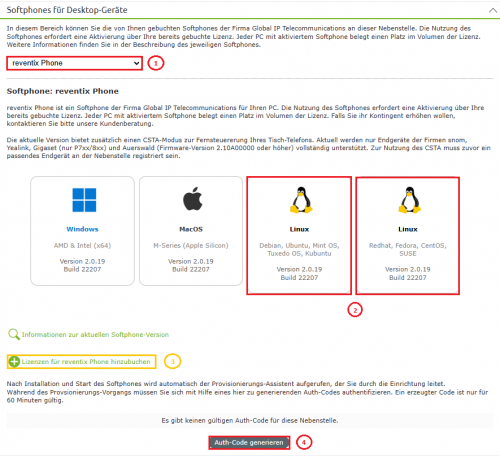 ① Scrollen Sie zu „Softphone für Desktop-Geräte“ und wählen Sie das reventix Phone aus